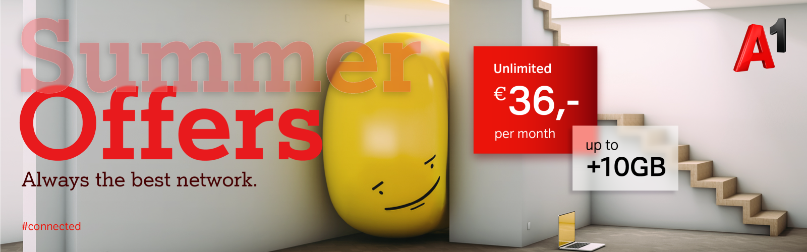 All A1 Logos have been optimised to work harmoniously with the design elements and in all channels, offline and online. The logos are all freed of their white box and the Red A has been optimised for digital use. The new options for logo landscapes offer a wide range of creative solutions and designs to make A1 stand out even more.