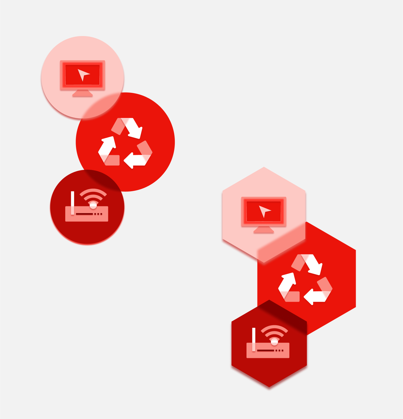 One of the main topics of the re-fresh is opening up the colour palette available for all types of implementations. We see more shades of Red, new secondary colours and the usage of gradients. We also introduce some ideas to work with transparency and opacity to come to different hierarchies and levels in the designs.