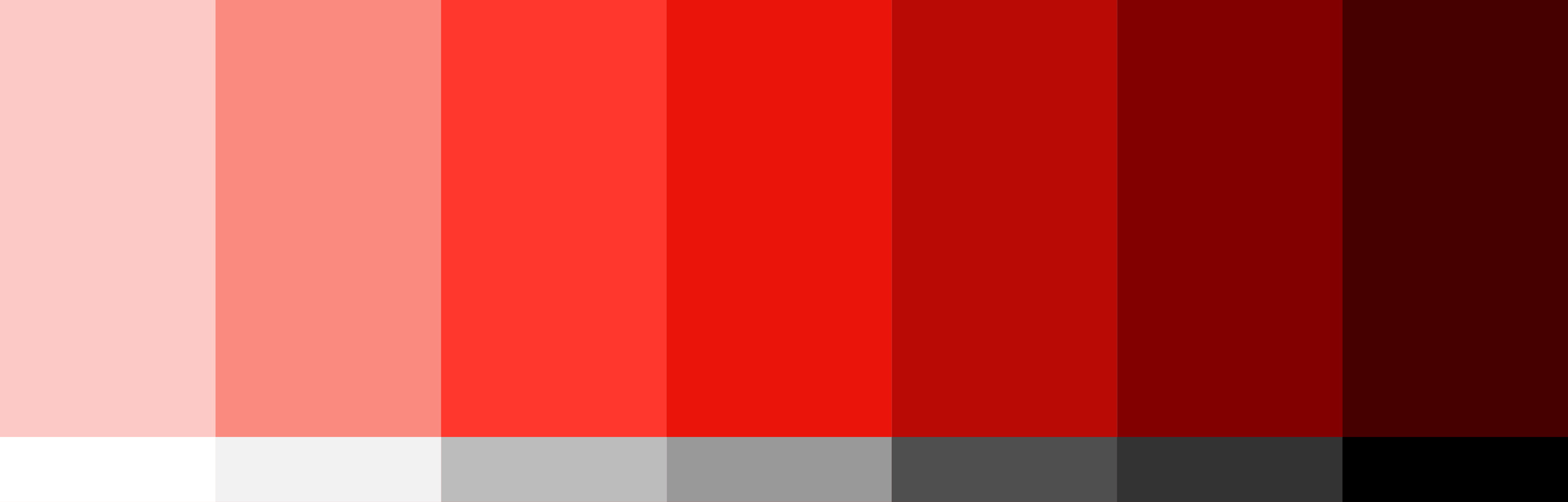 The primary palette consists of red and grey tones, it is derived directly from the colours found within the standard positive red logo from the highlights to the shadows.