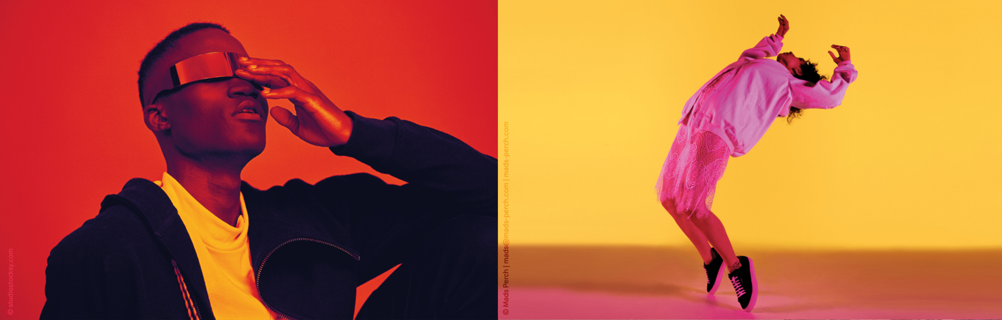Our studio photography focuses on people. The images should show dimension, with strong colours, high saturation and contrast.