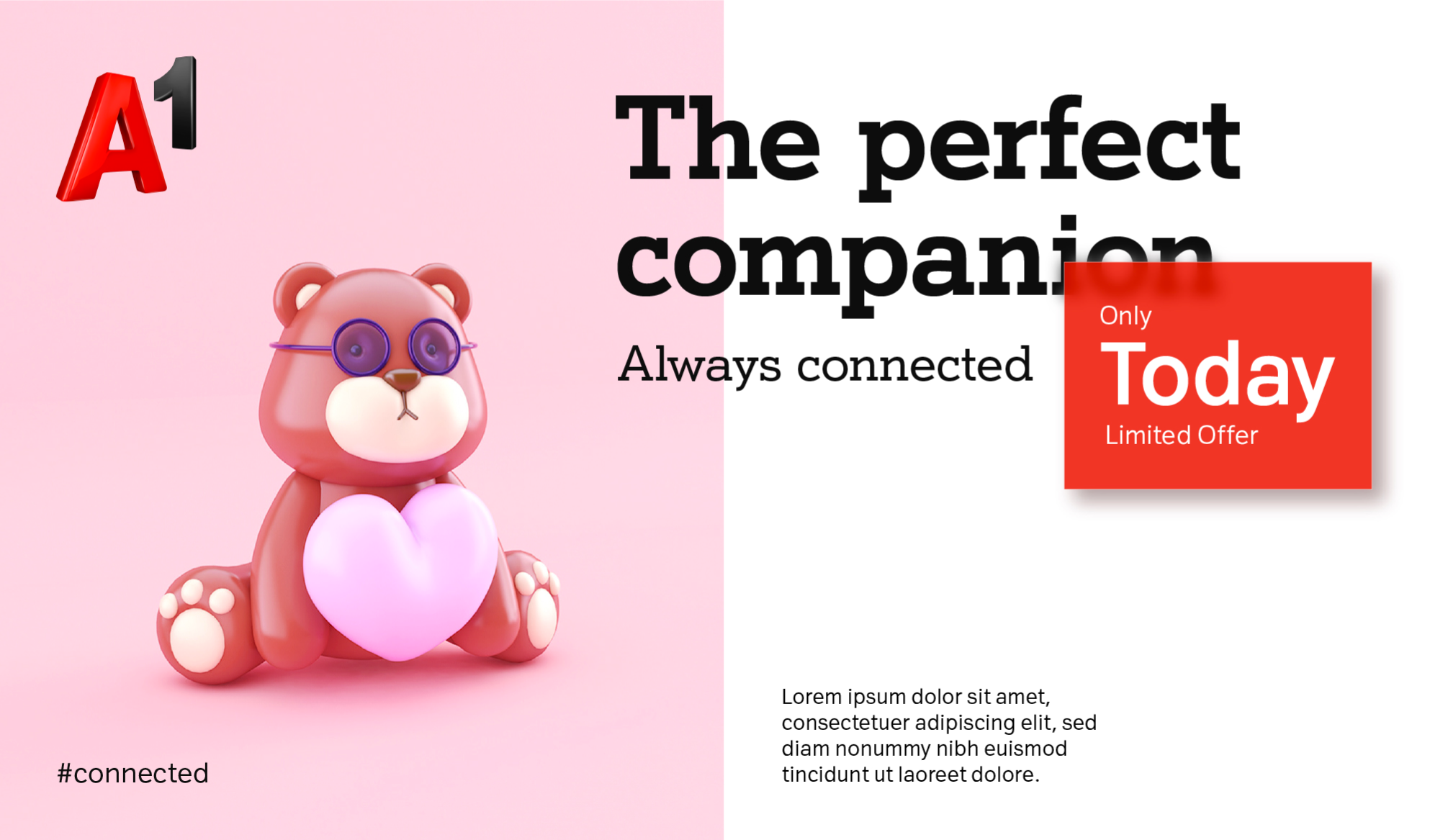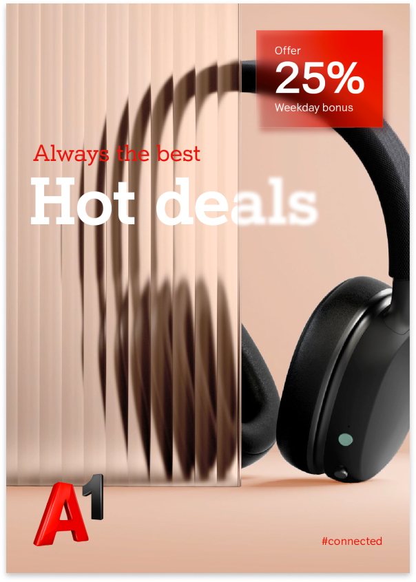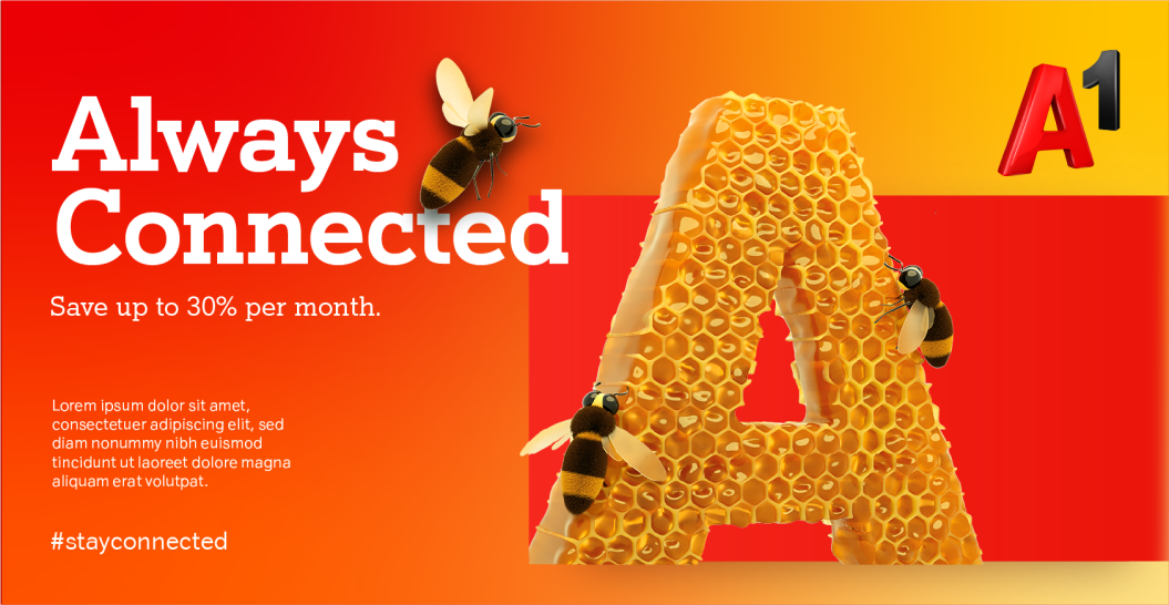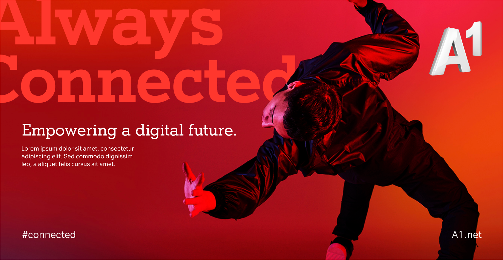 Typography is integral to our identity, it’s how we visually present the voice of A1. It’s how customers navigate through our communications. In order to cover all fields, we use typography functional as well as expressive. Don’t underestimate the power of a great message beautifully set in our typeface, sometimes that is all you need.